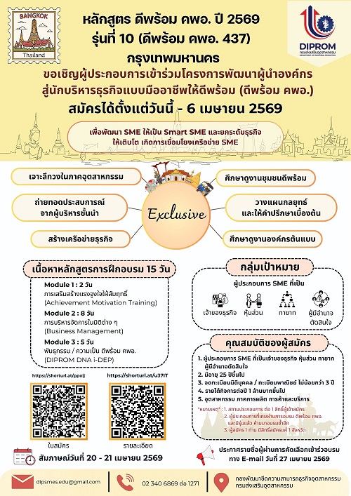 ท่านสามารถรับชมวิดีโอย้อนหลังของหลักสูตรฝึกอบรมต่าง ๆ ที่กรมฯ ได้จัดขึ้น สำหรับให้ผู้ประกอบการ หรือบุคคลที่สนใจ ได้รับความรู้ เพื่อนำไปประยุกต์ใช้ให้เกิดประโยชน์แก่กิจการและองค์กร