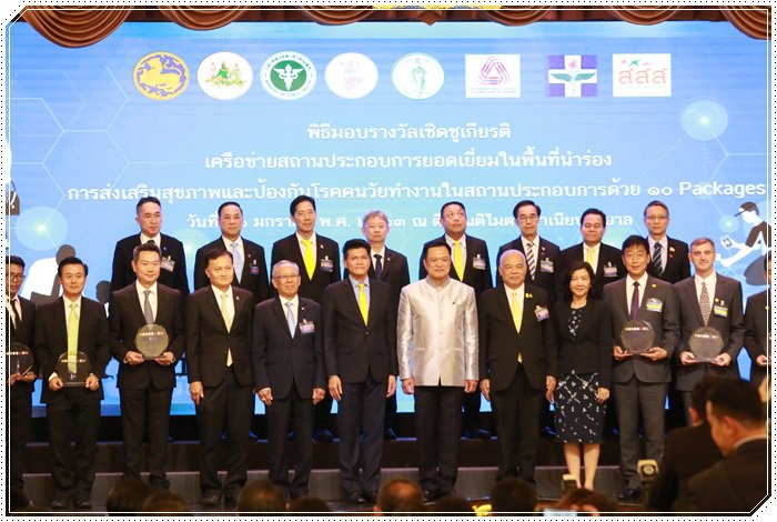 กิจกรรมการส่งเสริมสุขภาพและป้องกันโรคคนวัยทำงานในสถานประกอบการด้วย 10  packages  เป็นการบูรณาการร่วมกันระหว่าง 8 หน่วยงานภาคีเครือข่าย จากส่วนกลาง ส่วนภูมิภาค และสถานประกอบการภาครัฐและเอกชน เพื่อขับเคลื่อนและดำเนินงานด้านการส่งเสริมสุขภาพ ป้องกันโรค ประกอบด้วยชุดที่ 1 หุ่นดีสุขภาพดี ชุดที่ 2 จิตสดใส ใจเป็นสุข ชุดที่ 3 ครอบครัวสดใส ใส่ใจดูแล ชุดที่ 4 สุดยอดคุณแม่ ชุดที่ 5 เตรียมเกษียณอย่างมีคุณค่า พาซีวายืนยาว ชุดที่ 6 ออฟฟิศ ซินโดรม ชุดที่ 7 สถานประกอบการจะก้าวไกล ต้องใส่ใจสุขภาพแรงงานต่างชาติ ชุดที่ 8 สถานประกอบการดี ชีวีสดใสไร้แอลกอฮอล์ บุหรี่ ชุดที่ 9 โรงอาหารปลอดภัยใส่ใจสุขภาพ และชุดที่ 10 สถานประกอบการปลอดภัยสิ่งแวดล้อมดี มีสมดุลชีวิต โดยเลือกพื้นที่เขตสุขภาพที่ 4 6 และ 10 เป็นพื้นที่นำร่องในการดำเนินการ ซึ่งมีสถานประกอบการที่ได้รับรางวัลเชิดชูเกียรติทั้งสิ้น 10 สถานประกอบการ และมีโรงงานผลิตเส้นก๋วยเตี๋ยวชุนกี่ จ.ศีรสะเกษ ซึ่งเป็นสถานประกอบการภายใต้การดูแลของ กสอ. ขึ้นรับรางวัลดังกล่าว ทั้งนี้ ที่ผ่านมา กระทรวงอุตสาหกรรม โดยกรมส่งเสริมอุตสาหกรรม (กสอ.) ได้ดำเนินงานสร้างสุขภาวะให้กับสถานประกอบการผ่านโครงการส่งเสริมผลิตภาพและสุขภาวะองค์กรในวิสาหกิจขนาดกลางและขนาดย่อม SMEs Happy and Productive Workplace (SHAP) เพื่อส่งเสริมผลิตภาพควบคู่กับการสร้างสุขภาวะองค์กร ในรูปแบบต่าง ๆ อาทิ จัดสัมมนาเพื่อสร้างองค์ความรู้ให้กับกลุ่มวิสาหกิจ สร้างศูนย์สนับสนุนการเรียนรู้การสร้างสุขภาวะองค์กรภายในศูนย์ส่งเสริมอุตสหกรรมภาค จำนวน 12 ศูนย์  จัดทำการเรียนรู้ e-learning ตลอดจนประชาสัมพันธ์การแลกเปลี่ยนความรู้ผ่านสื่อออนไลน์ โดยมุ่งหวังให้วิสาหกิจสามารถนำไปปฏิบัติได้อย่างเป็นรูปธรรมต่อไป ### PR.DIProm (กลุ่มประชาสัมพันธ์ สำนักงานเลขานุการกรม กรมส่งเสริมอุตสาหกรรม) รายงาน/ภาพข่าว
