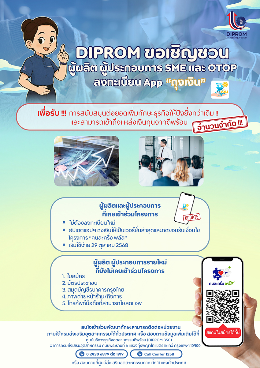 DIPROM เชิญชวนผู้ผลิต ผู้ประกอบการ SEM และ OTOP บลงทะเบียน App "ถุงเงิน"